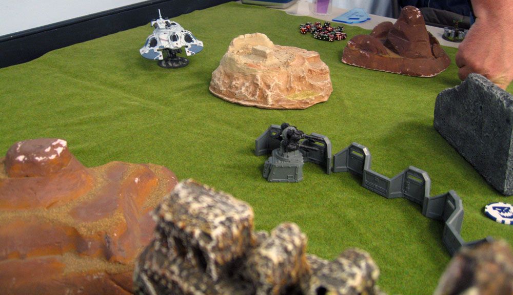 LoS and the reapers easily pick them off ignoring cover with ap3 missiles. Eldrad is also manning the quad gun and will for the entire game.