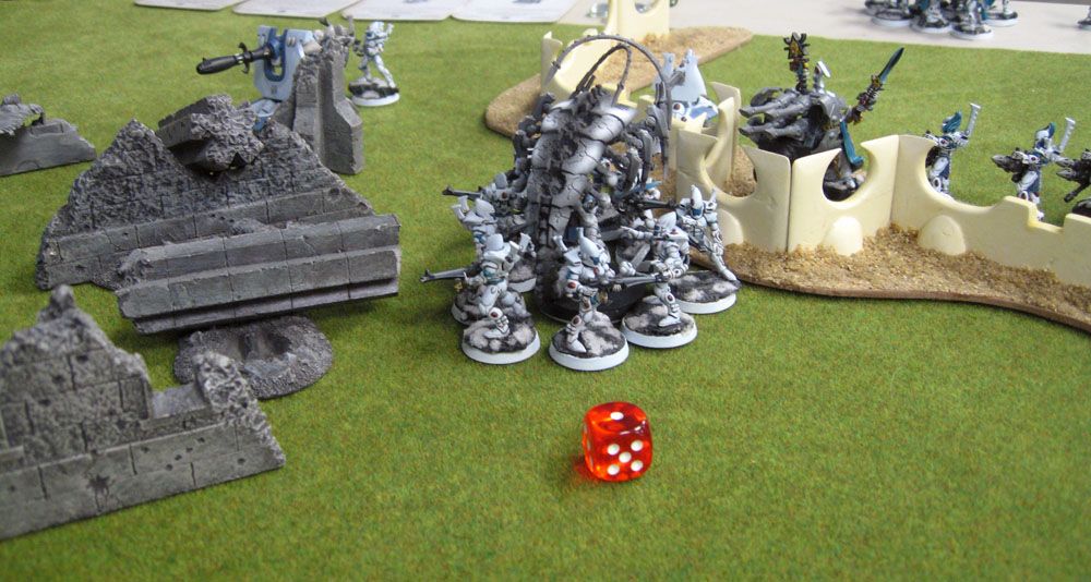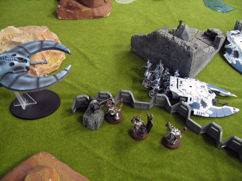 Shooting kills the NDK and 2 terminators. The serpent makes a flat out move onto the relic. The guardians finish the last wraith and they consolidate towards the relic.