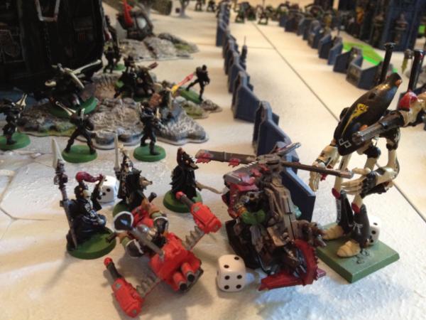 The support batteries should have been pounding the Grots from earlier on too to break them and leave that obj open too. In hindsight having only 2 scoring units hurt the Eldar and the Orks probably should have gone after them earlier/more convincingly.