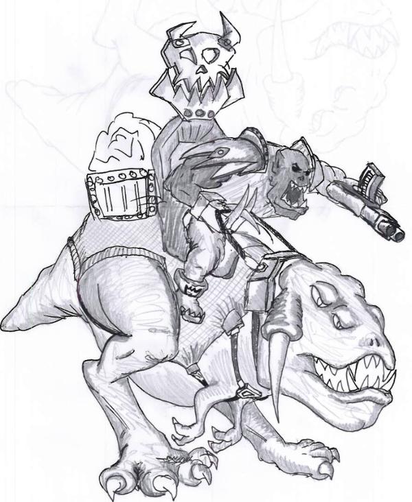 So here is my fast sketch showing approximate view of how you can put Warboss on some big squig.
