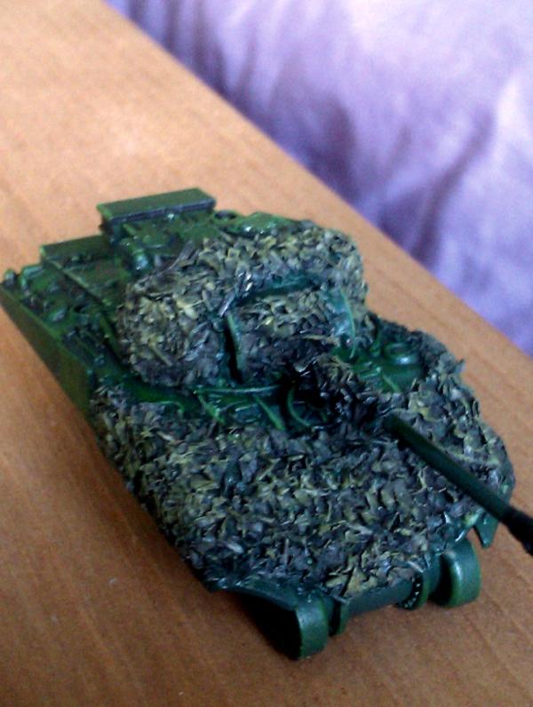 Finally I cut open a jasmine tea tea bag (these leaves seemed larger than the ones in my normal builders) and just poured it all over the tank. Left it one night and then primed it with Army Painter Angel Green...