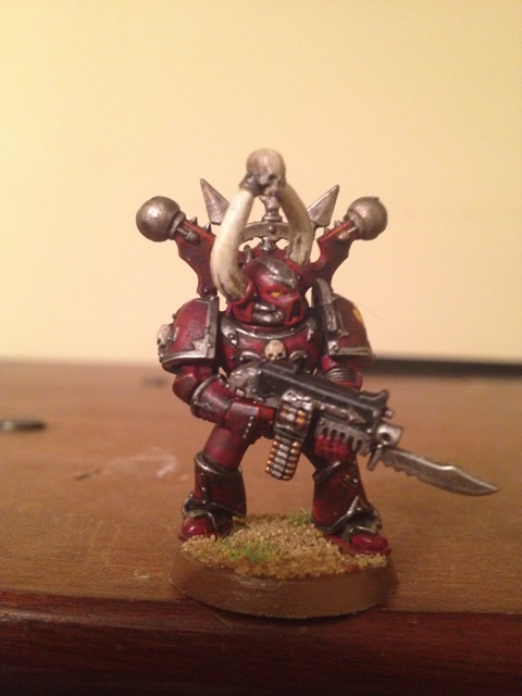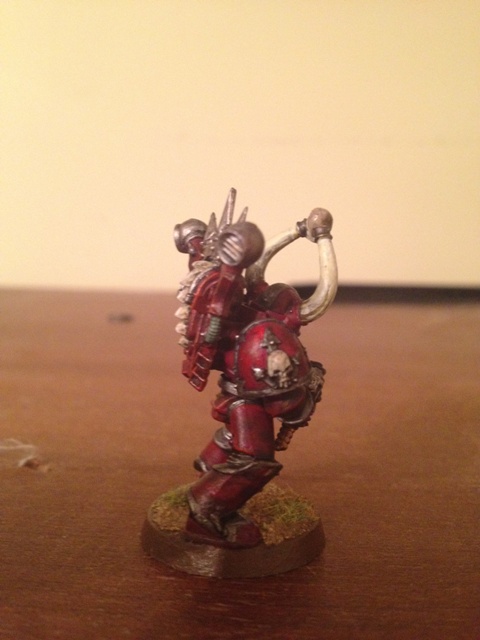 Here is my first painted chaos marine! Please give some feedback, I think I need to work on painting horns and eyes!