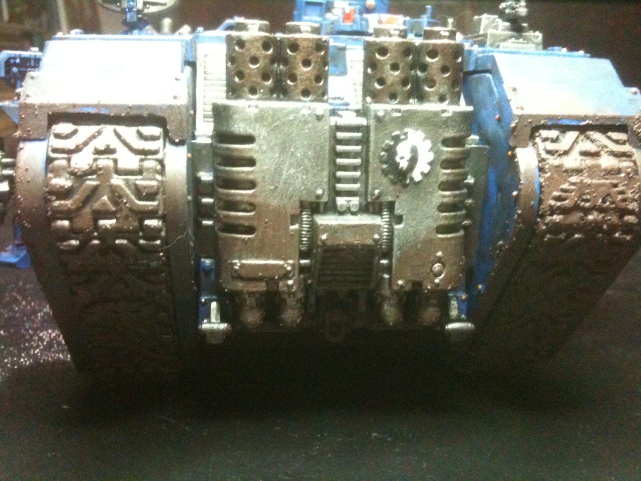 Painted these up at the same time, so I used the same method. They're a bit darker than normal since I washed the armor black. Kind of like the off-blue coloration. I used the new GW mud texture, and I say, it's pretty nice. I just wish I could get bigger pots of it.
