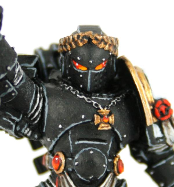 The second picture was taken before I added to more coats of Badab Black Wash to the areas that needed it (mainly that grey stripey area below his sword hilt.