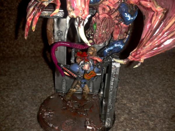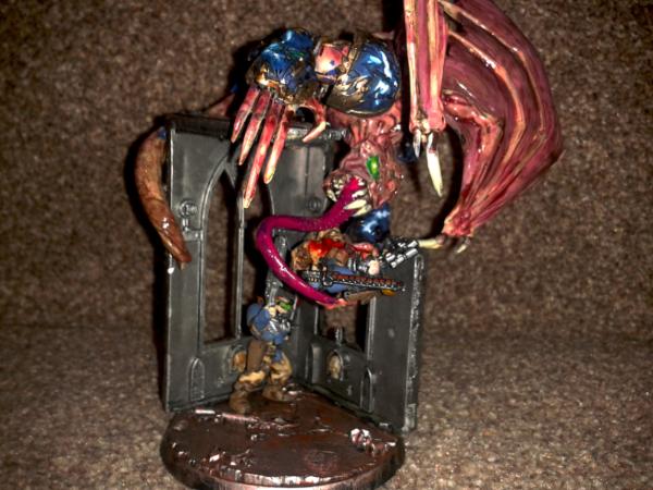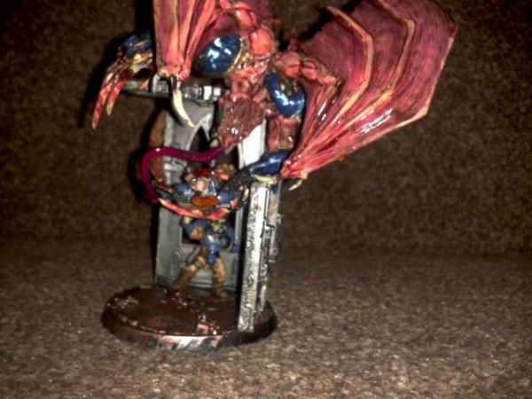 And while I usually hate large pieces of terrain and enemies following around a model (especially a mobile one like a winged demon prince. ) but this works a little better. Just because it gives it a predator kinda feel, like it's stalking them. Perfect for Night Lords.