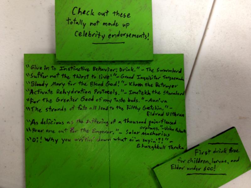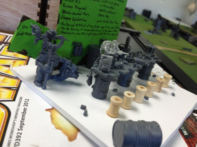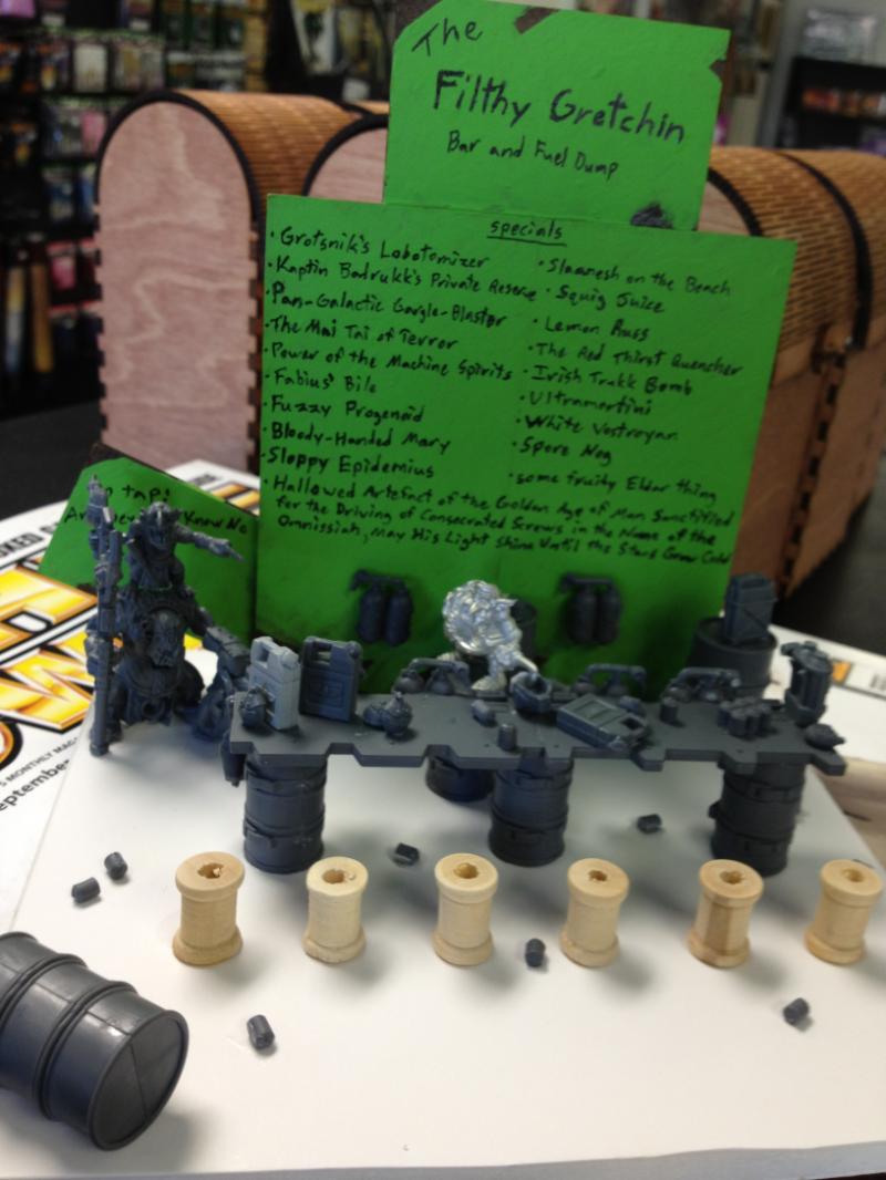 I've decided to make a bar (/fuel dump, but I'm sure there's little difference to a grot) for my local gaming store (Dirty Goblin Games).