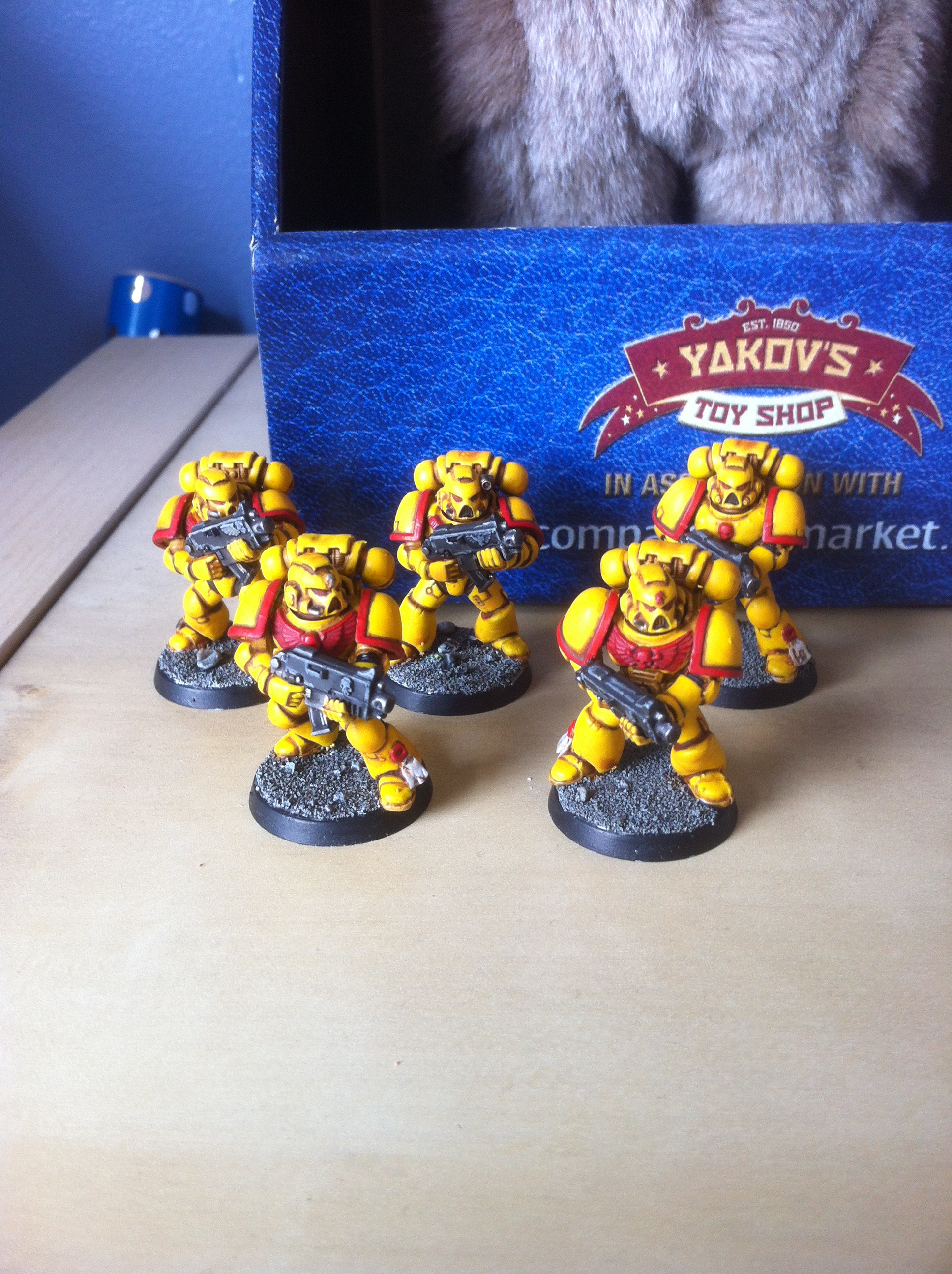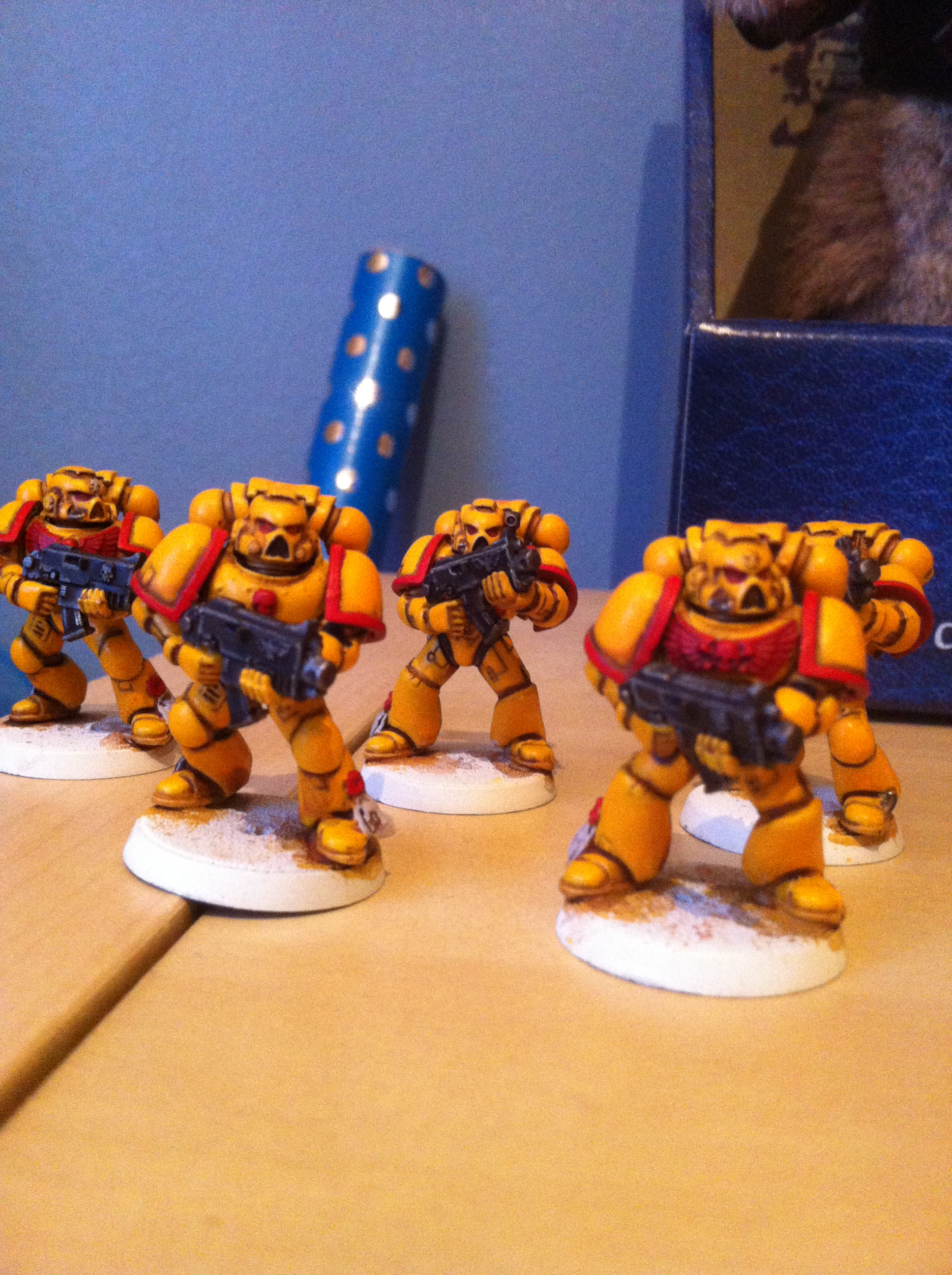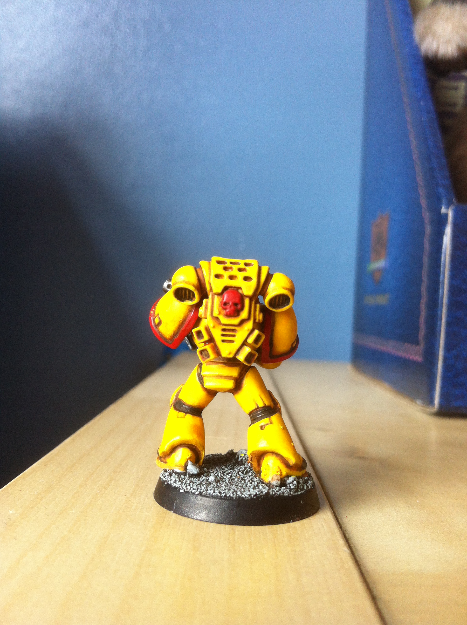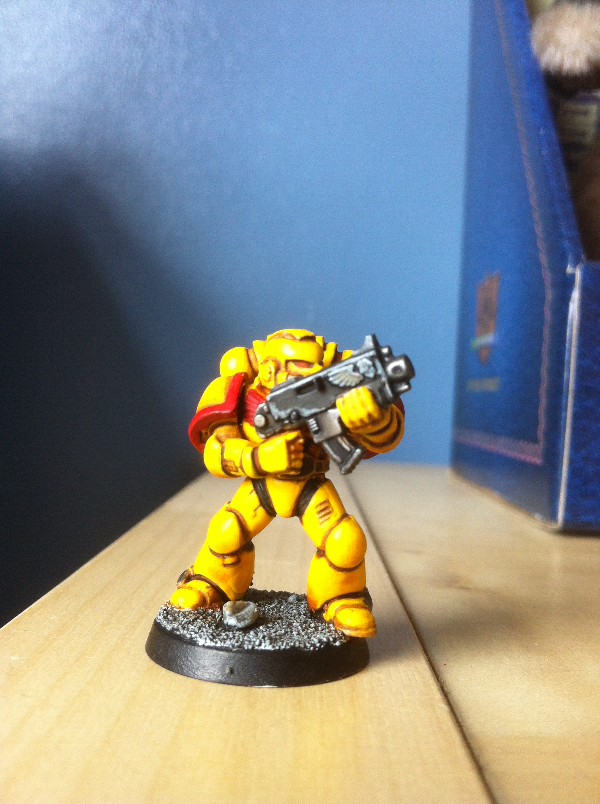For the yellow I primed with white used the yellow foundation paint as a base then used yriel yellow for my 1st highlight followed by a wash of devlan mud and a second highlight of flash gitz yellow then a final wash of gryphonne sepia to blend the final highlight.