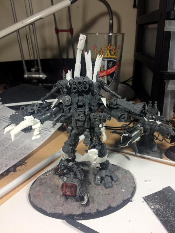 This is Kaptun Miffunz personal Deff Dredd for my army. Taken from the inspiration of Wazzoo's Dread Knight conversion. Still a lot to add on before painting but here's a few of the photos so far:
