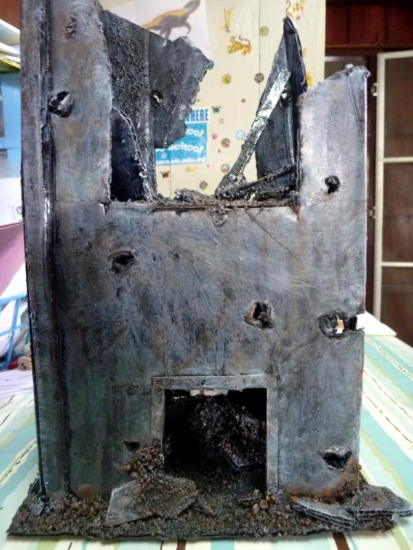 I scratch built it out of cardboard and a couple of pieces of foam, then followed this tutorial to paint it up: