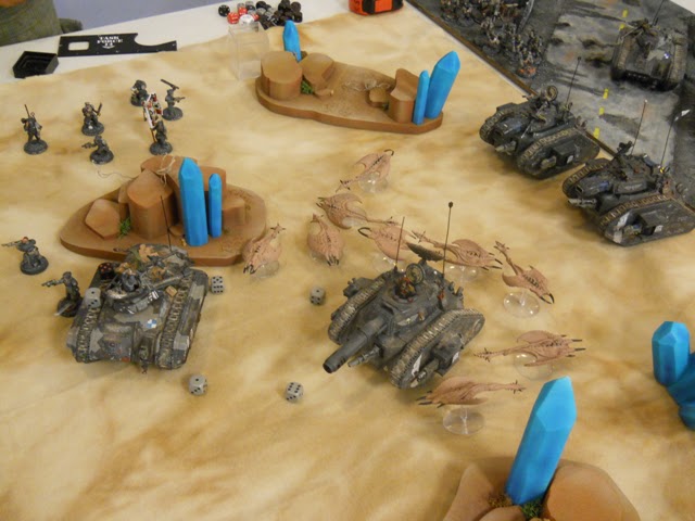 Nearby the Horrors hang out a bit while the Grinder assaults and takes out the Chimera - killing 6 in the explosion but leaving the unit unpinned.