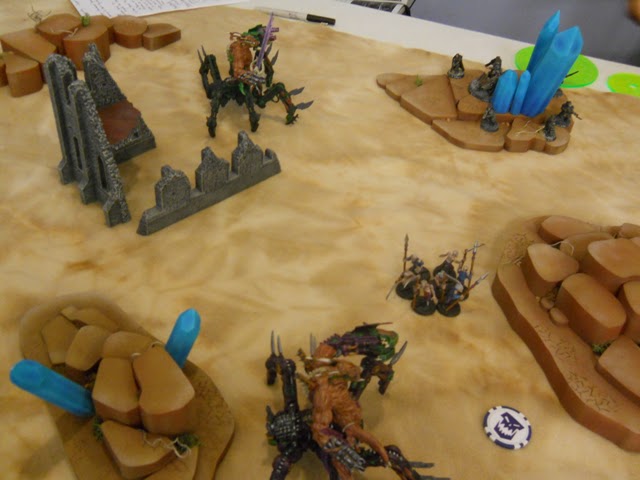 There was some discussion after the tournament about the scoring. Compared to the other undefeated player in game 1 we both rolled the same number of objectives and I had 0 Heavy Support choices to try to kill for bonus points. This was the minimum possible points for the mission type, but I took a max score in that game. In game 2 we played the Relic and I scored 5 points (missed first blood with my mishap) and he scored lower. At that point I was ahead in points - so even if we had normalized the points for the last mission I had the victory. Further, I scored 36/37 possible points - while others left a number of points on the table.