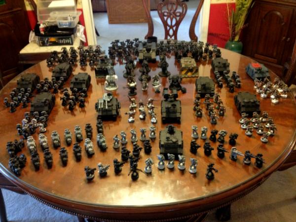 I seemed to be suffering from a very serious condition that many long time gamers have at one time or another suffered from. This is most of my Space wolves army with the exception of about another 50 grey hunters/blood claws and 5 more terminators. I have been slowly getting back into painting and to do a squad normally takes little less than a week. That might be a bit slow but I often find myself watching more movies than actually painting.