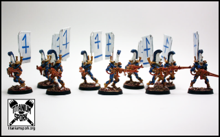 As a "Samurai-themed Eldar" player I did want to suggest some ideas, though. One of the easiest things that you can do to add the desired flavor to the army are the back-banners (sashimono). They're the main way that I tied my Eldar into the RPG/ CCG setting that they're based on, and they couldn't be easier to make. There are a few ways of going about it: