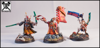 2. Sculpt them. This isn't an ideal solution, as unless you are quite handy at sculpting robes/cloth with Green Stuff, it probably just isn't worth the time. I used this technique, sort of, on my Farseer: the banner is actually plasticard, but I used GS to sculpt some rather half-assed folding into the flag.