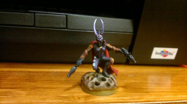 The painting is great, and I especially like the purple treatment that you gave the helmet's horns. How are you handling the dual wield blast pistols rules-wise?