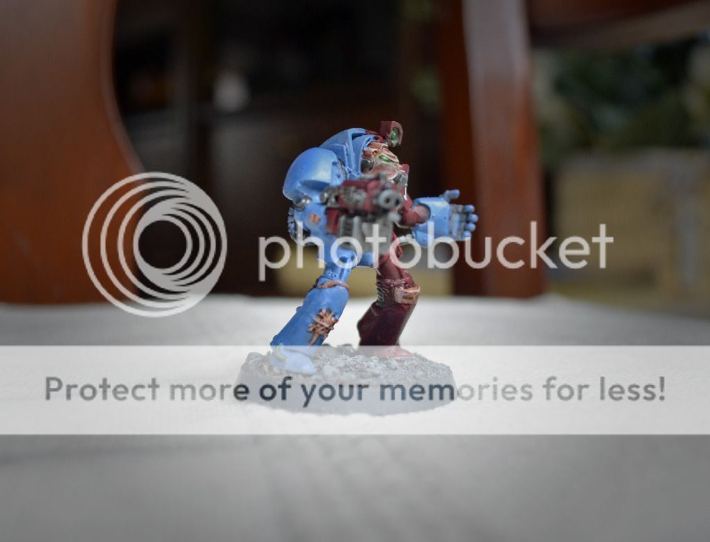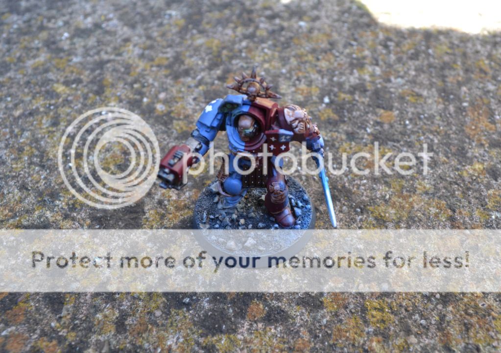 Thanks guys. I'm pretty proud of him. He is about a head taller than a usual termie and I think it looks natural still and gives the character loads of posture. Also I like the split colour scheme. I think i'm going to go with a Medieval-ish theme. Just got to think of a name... And then make every marine and termie slightly bigger.