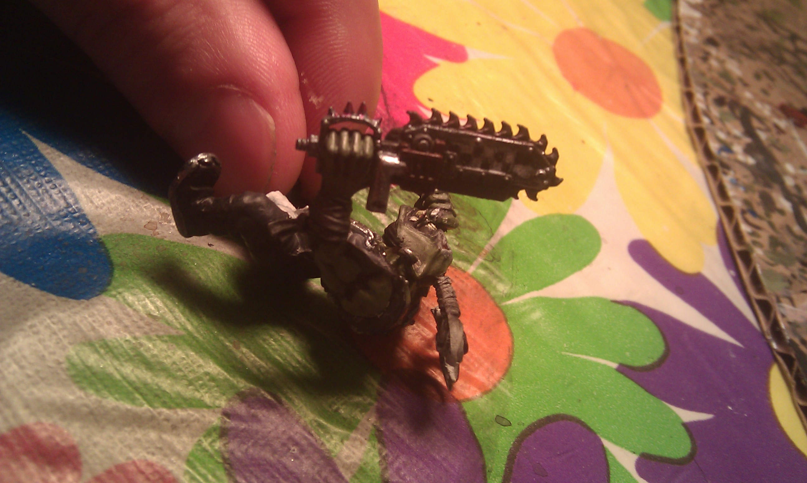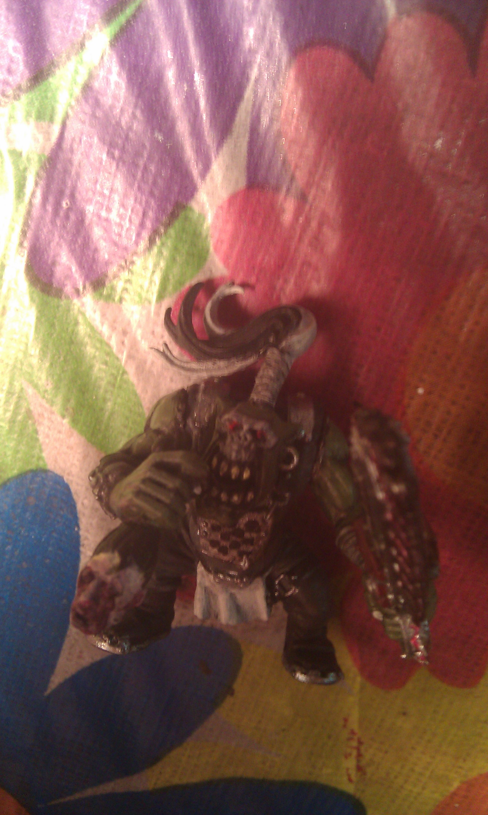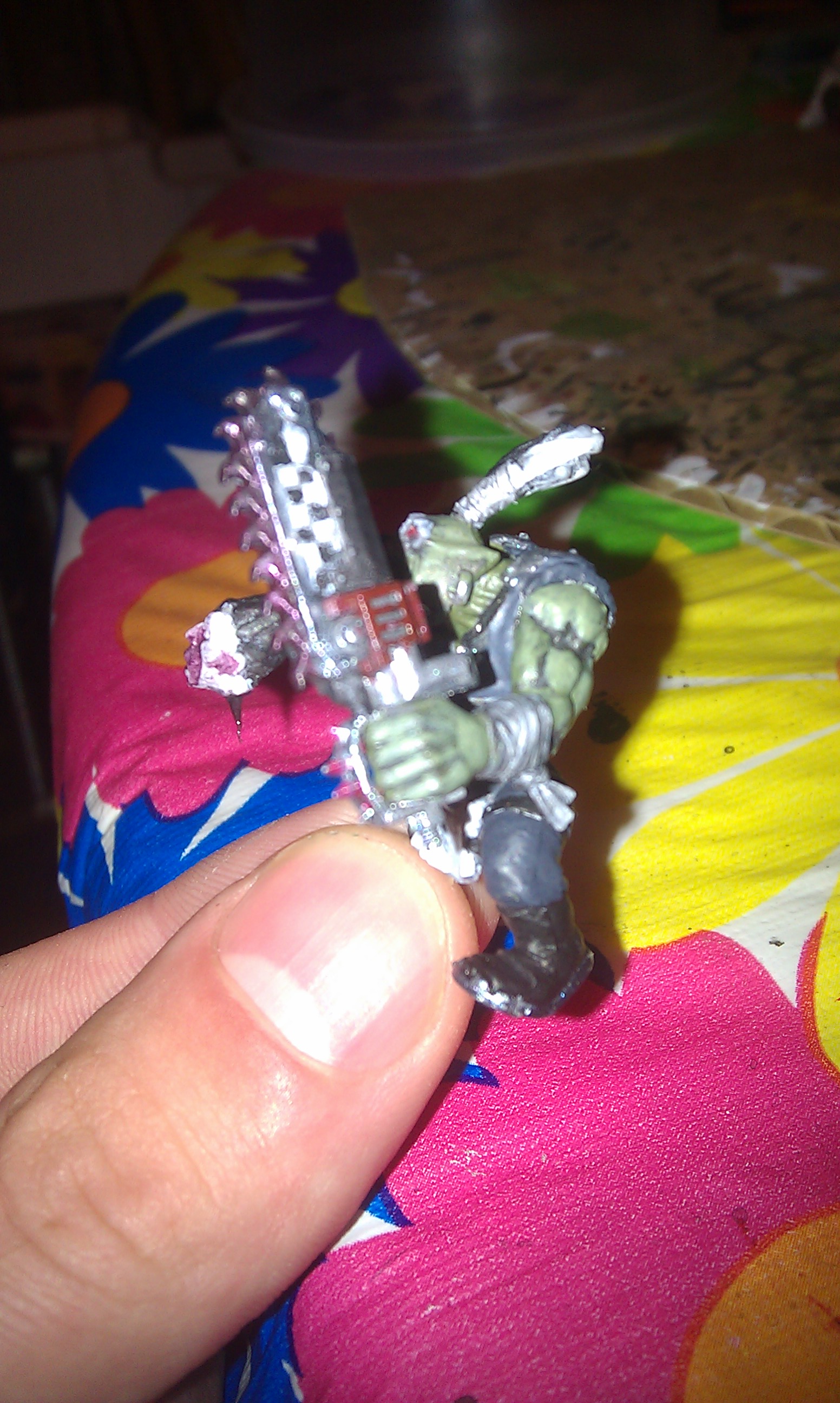 Subject: goff ork with chainsaw holding a decapitated head