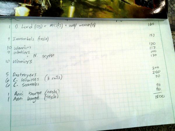I know that this was my opponent’s first game in 6th Ed, was using a mech list based off 5th, and was probably missing a few models. As such, Necrons do very well against it, but I am sure with a little list tweaking and some more 6th Ed experience, he will be able to have a much different outcome.