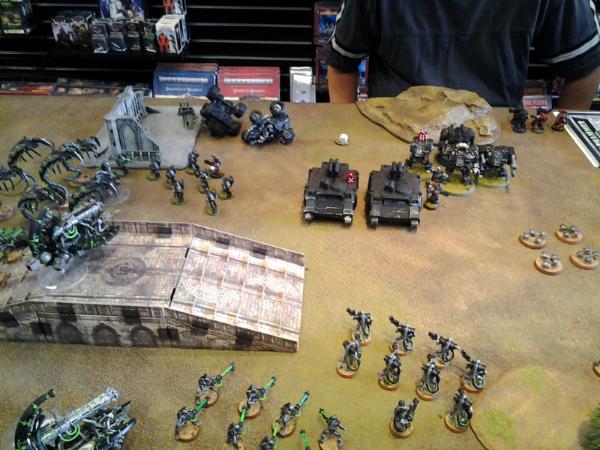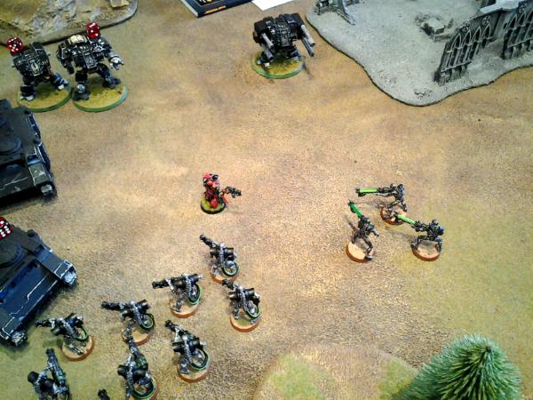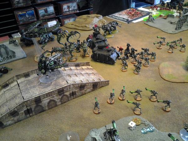 Another angle of the Necron left flank, with Bruticus preparing to bring the pain.