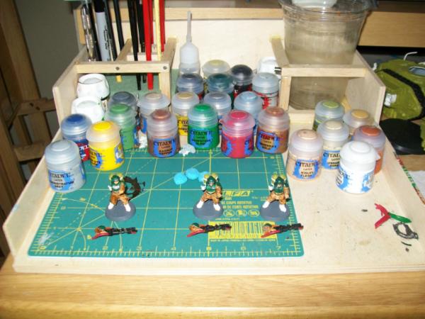 I built myself a mobile painting station and here's what it looks like, currently has 3 flamers on the line: