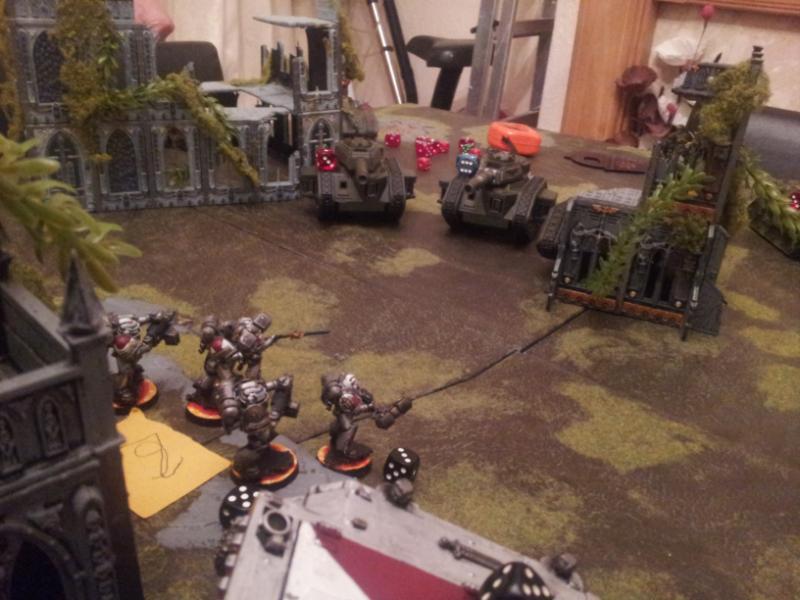 Shaun moves the melta Veterans forward ready to get some pay back on the Rhino with two hull points.