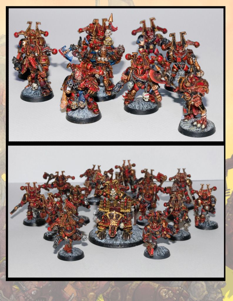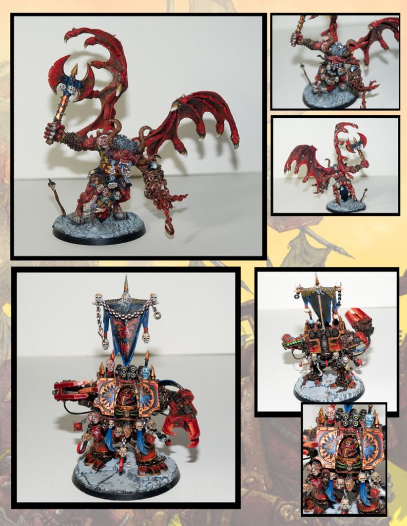 The quick background to this army involves one of Angrons retinue of Bloodthirsters to have taken Worldeaters from the first war of Armeggedon and formed a warband, complete with veteran's of that war in particular. They are modelled after Angron's defeat from the Grey Knight sacrafice, on the ash wastes, when the Bloodthirster returns to lead his new warband off Armeggedon and into a position to threaten many worlds.
