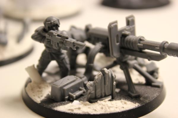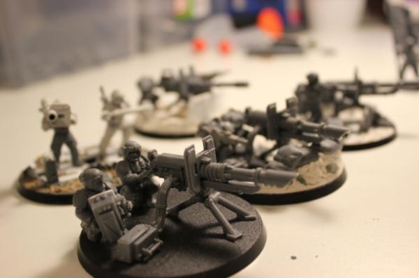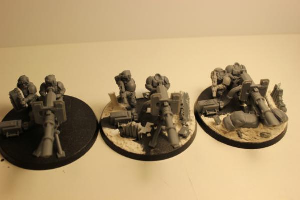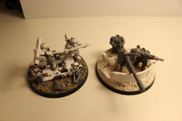 So here is a few shots of the infantry that will accompany my tanks, all wip, but you get the idea. I tried to make them as scenic as possible without being overly busy? And the heavy weapons will be themed in threes, lascannons reinforced dirt, autocannons plasteel field fortifications.