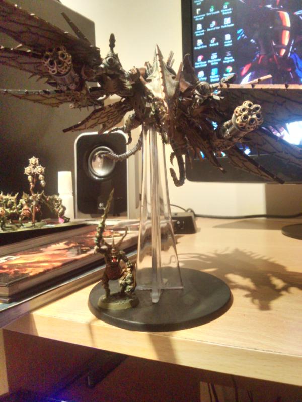when i first saw the flyer i was thinking it wouldn't fit in with my death guard . now i have seen you paint job i am seriously considering adding one to my army . great job