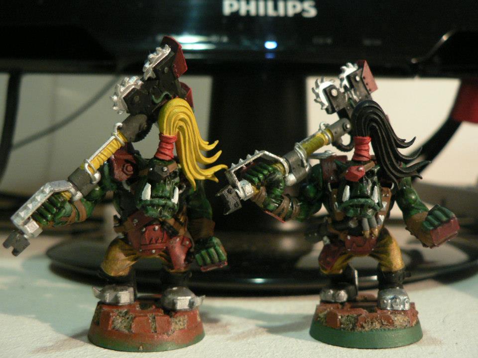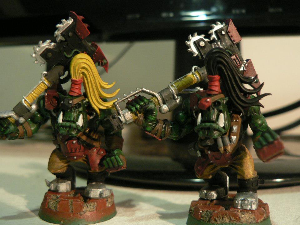 So my mate plays orks and he's FINALLY finished some nobz, i think they really cool.