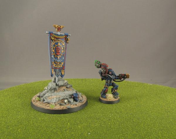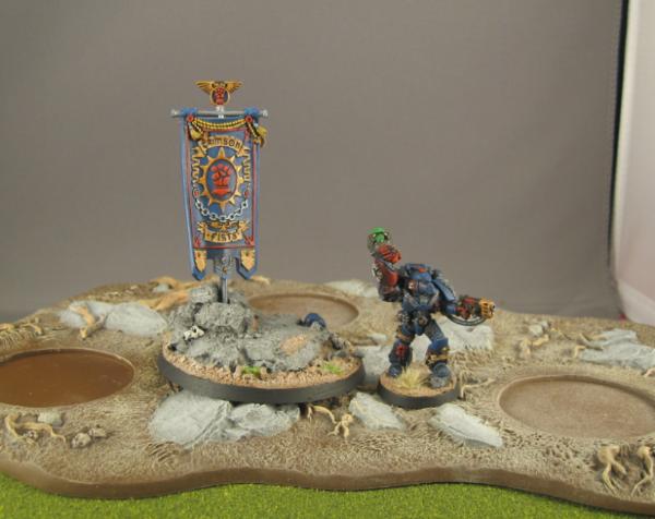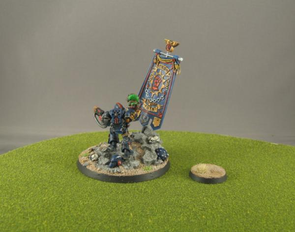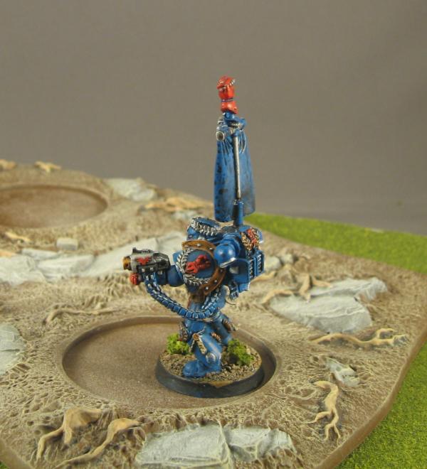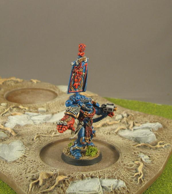 And now one of the models I had a lot of fun with! The 25th Anniversary Crimson Fists Sergeant with Scenic Base. I put magnets in his feet and in the bases so that I can either use him as a show model or as an actual sergeant on the table.