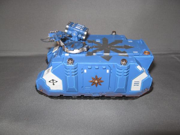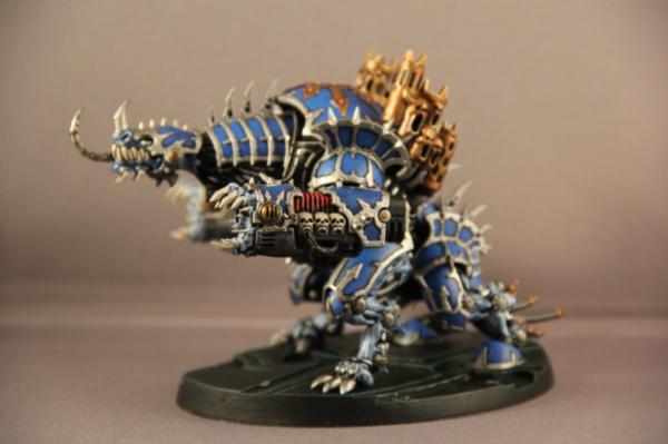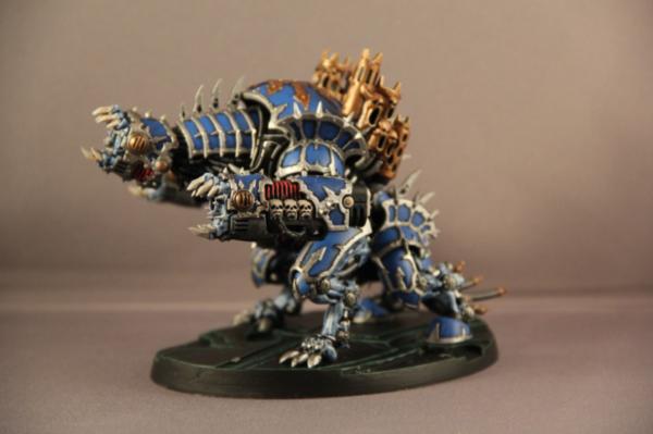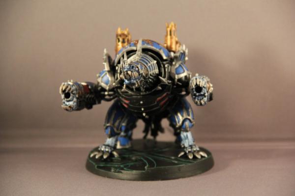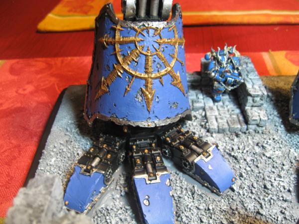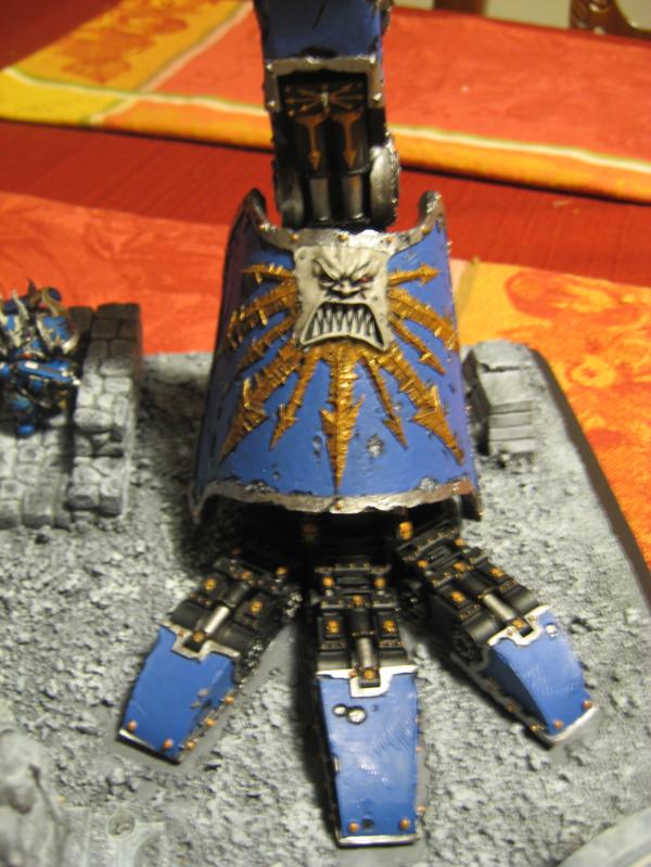 Kronk, those are subtly done. I thought they were pretty basic at first, but I can see the highlighting, the shading on the bottom near the treads. How did you do the Tzeentch and Chaos symbols? And are those Dirge Casters in the first two shots?
