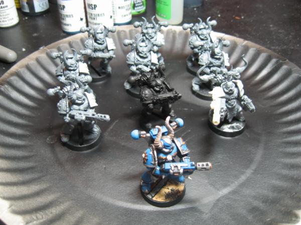 Looking good. That blue is really nice. The marines and the Helbrute are really nicely done. The DP is not bad, although he is a bit orange-y for my taste, and could use a little depth. Maybe hit it with a red wash?