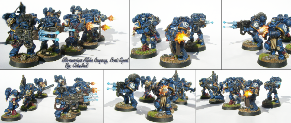 The Legion of the damned are really old in terms of my painting, as for Astorath, are you referring to his back pack or the exhaust? The Exhaust is white with Ice Blue and wash applied to the outlines and stuff, his base coat is Mordian Blue with Ultramarines Blue highlights. Kind of confused, perhaps the angle of the photo makes it look too close to the same color?