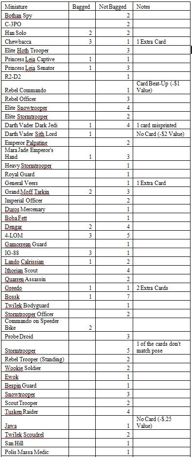 Large collection of Star Wars Miniatures from Rebel Storm collection - I think, parted out, someone get get a couple hundred dollars for all of these, but I need this stuff out of the nursery before the baby is born, so I'm asking $100. See the complete list below. Forge World