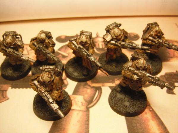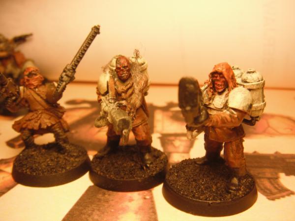 @ theophony: Yeah that guardsman is still in the very early stages of paint but I like to keep the classic Cadian color scheme, it reminds me of the Doom video games which I love. I'm glad you caught the similarity in color of the cultists, the concept is that they are former pdf, so they'll have standard issue fatigues albeit with makeshift armor plating rather than good old Imperial flak armor, like our poor soon to be deceased sarge here.