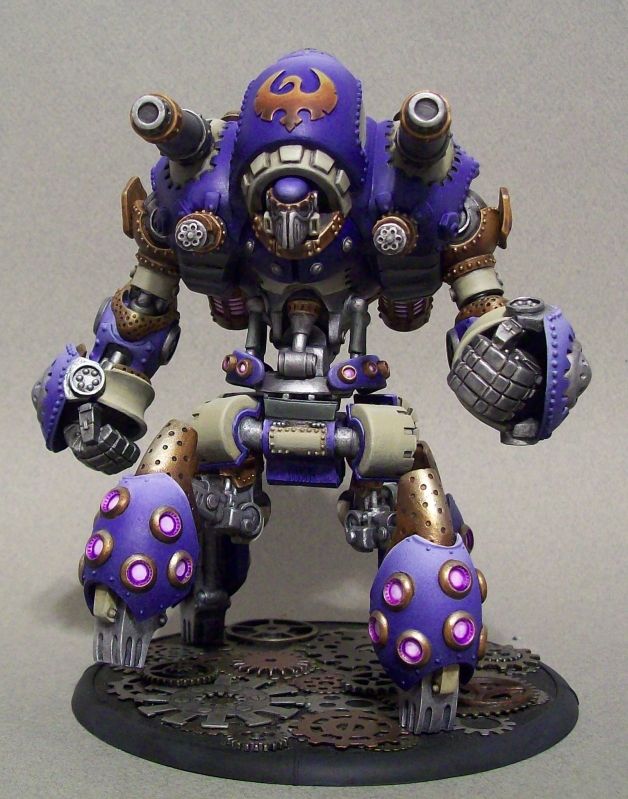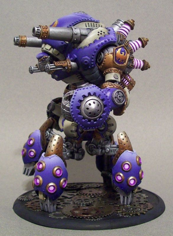 Regarding the paint job, the glowing purple on the legs especially is great! Awesome conversion idea and execution... Cygnar is getting too tempting