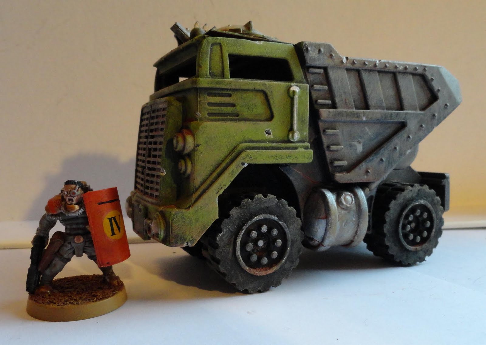 I'm a huge shopper at Resale Shops. Even though I rarely find gaming-specific stuff (did find a battleforce box filled with half-used vehicle accessory sprues for 3 bucks once though...) resale shops are the source for most of my terrain. Toy buildings and such -when properly greebled- are great for wargaming. Here's a building and toy truck that cost me a buck each. After conversion and painting they look great on the gaming table.