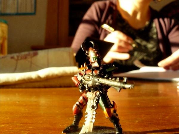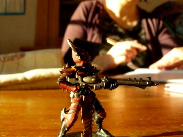 "Archon Yulliptidon sat apon a throne made of polished glass, which gleamed with magnificence in the rays of the dying suns, beautifully suspended above the the many razor sharp peaks that where Commorragh. The archon held within his hands a a delicate pyramid of sculpted crystal, from which emitted a faint glow, an echo of the soundless screams of pain belonging to countless tortured souls forever trapped within. The room in which the archon sat in was something like a throne room, but displayed apon the walls where helm of every color, but all the same in size and shape. Some bore eagles on their foreheads, and others still contained the decapitated heads of their previous owners. Two huge, beautifully carved iron double doors, engraved with intricate runes of pain and suffering, opened at the far end of the room, to reveal a tall, elegant dark eldar warrior, clad in armor made from bone and flesh. "lord Yulliptidon, you asked for my presence?" Said the arrival, " to what do I owe the pleasure?". The archon raised his elongated head, skin as pale as a full moon, eyes as vivid as a horrible nightmare. " I did not ask for you, Thrayon, I ordered your presence. Do not think to much for your self, for truly, you are not much past a feral that one would find on the streets. As for why I have ordered you to my palace, it is because their is a task that I wish you to preform. I wish you and you kabal to cleanse the imperial out fort of Sargosain Gastienagan." Thrayon was both aghast and interested at what the archon had just said. "Such a task would stretch my kabal to its limits, only a great reward would be enough to do a deed like this." Yulliptidon was outraged by the the proposal of a "great reward" by Thrayon, but did not let his anger show, hiding it with a cold smile that hid his evil intentions surprisingly well. The archon was was famous for never telling a lie in his life, but was very fond of veiled double speak, and this was no exception. "Do not worry, Thrayon, you shall receive what you deserve." Thrayon, happy with this outcome, left to carry out Yulliptidons task. Little did he know what was coming. Thrayon had done a thousand evil deeds, and what he deserved was a horrible death equal to to all those he had caused. Yulliptidons smiled. He was going to have fun."