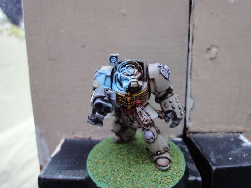 This is the first termie I have painted from the set. I am overall happy with him; I know the OSL needs something else, I think! Ah! I do not know. Anyhoo, waddaya think, people of Dakka? Automatically Appended Next Post: Just to say, I will be drilling his gun barrel, the black dots are naff 0_o