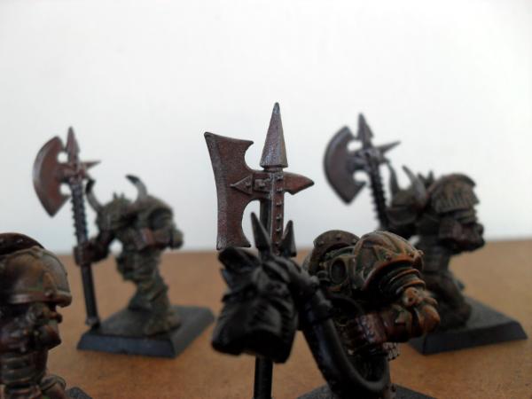 Shall try another wash and drybrush session on a test halberd when I get time next few days then see if I can get it more obviously rusty. The subtle effect isn't bad for upcoming orcs weapons at least so something learned!