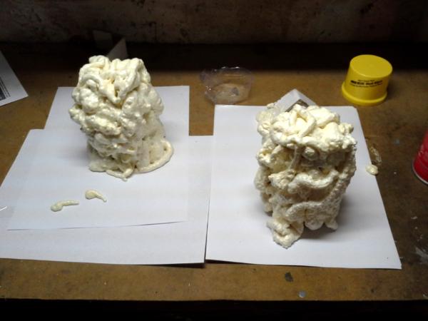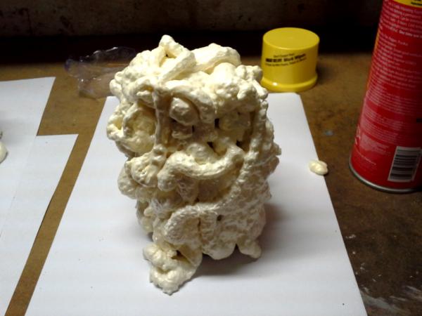 The expanding foam is machinable, paintable, whatever-able. It's tough, light, and looks quite organic for our needs. I'll be drilling holes near the top so that I can add some 12 gauge stainless wire for tentacles, but go ahead and nid it up as much as you want. Scything talons, chitin plates, claws, teeth, the list goes on. Use your imagination