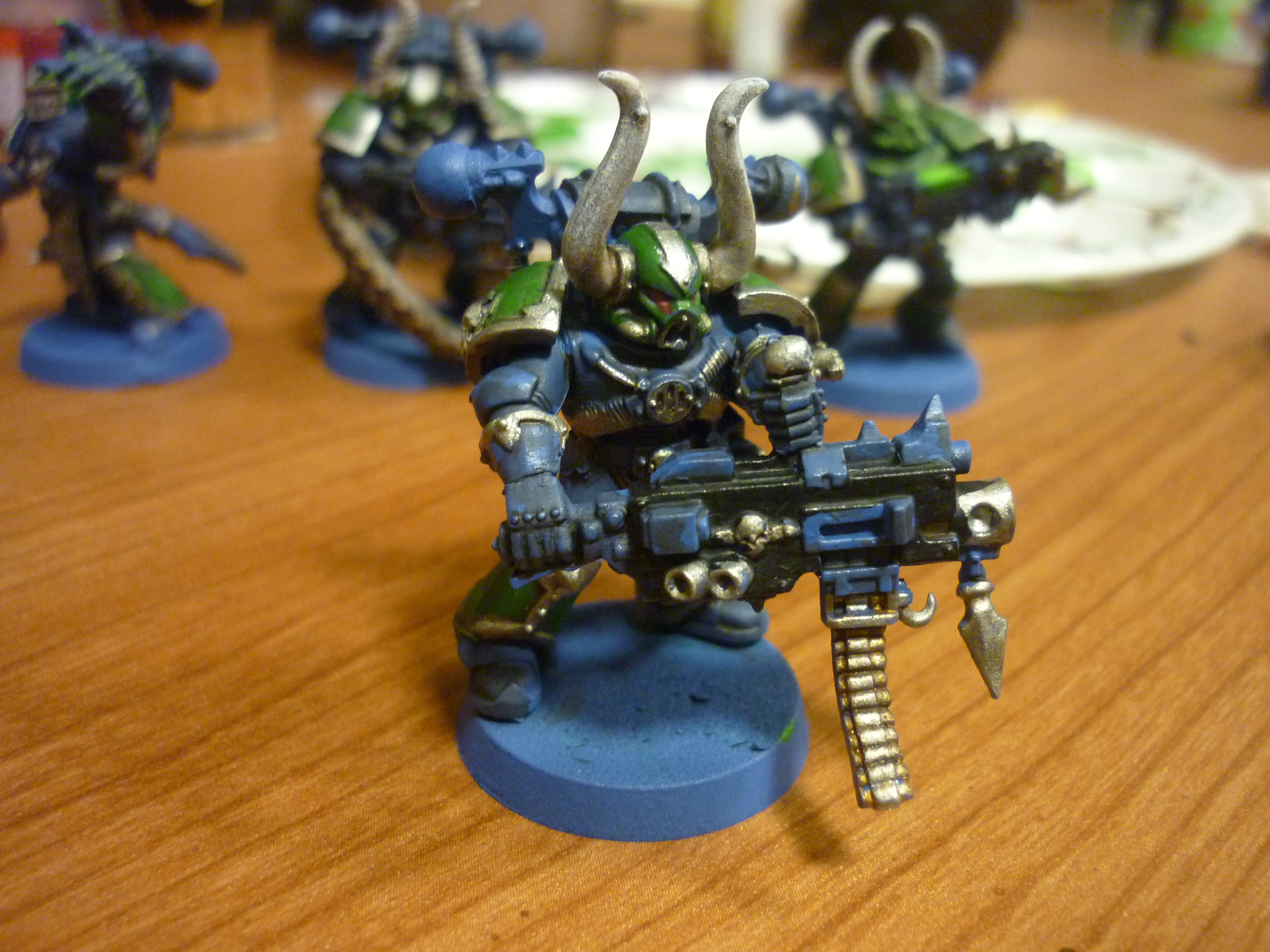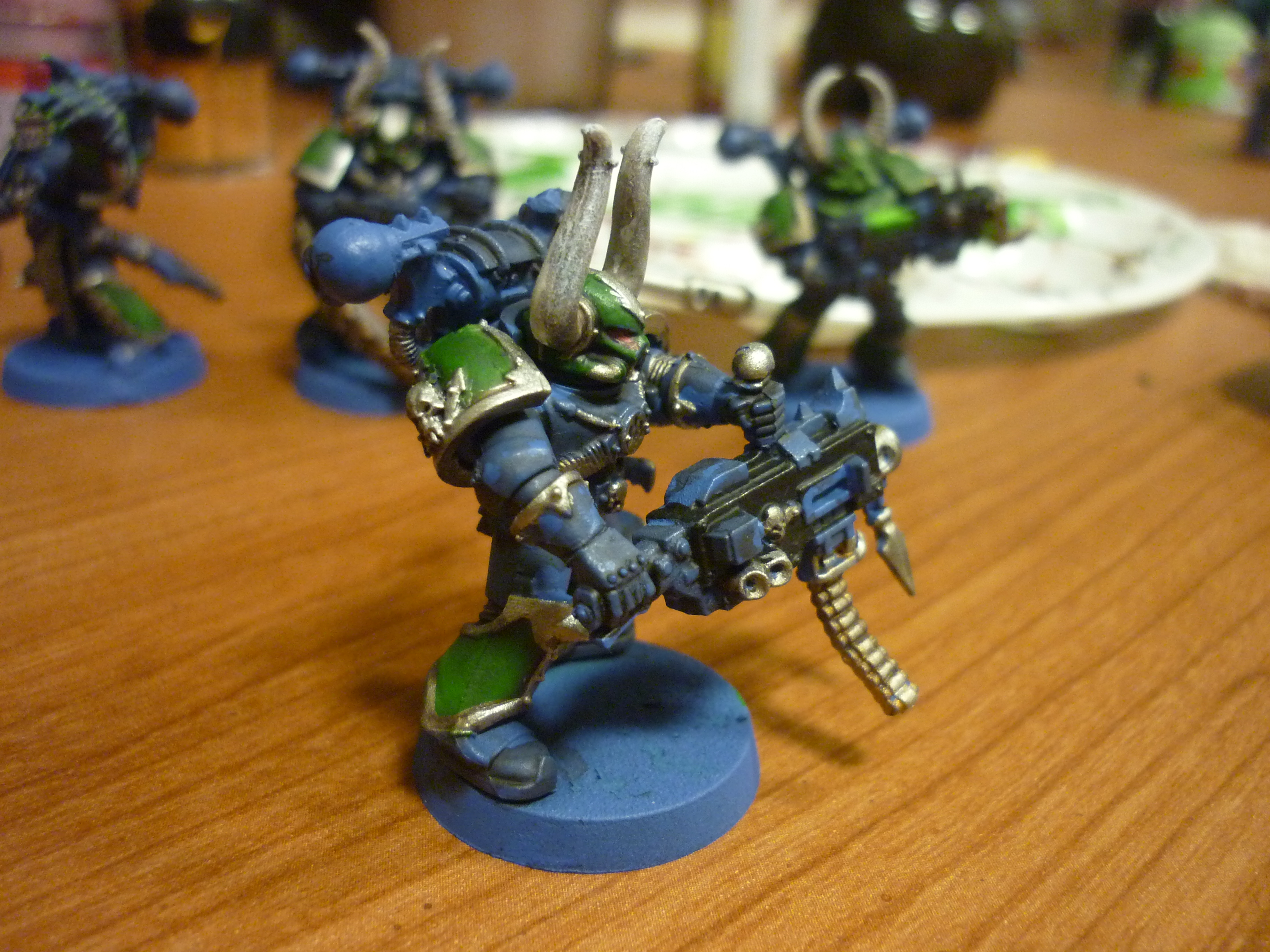 Havoc squad for my alpha legion, made their heads green so I could call them the heads of the hydra. I know this is a repost, but I ment to put it here.