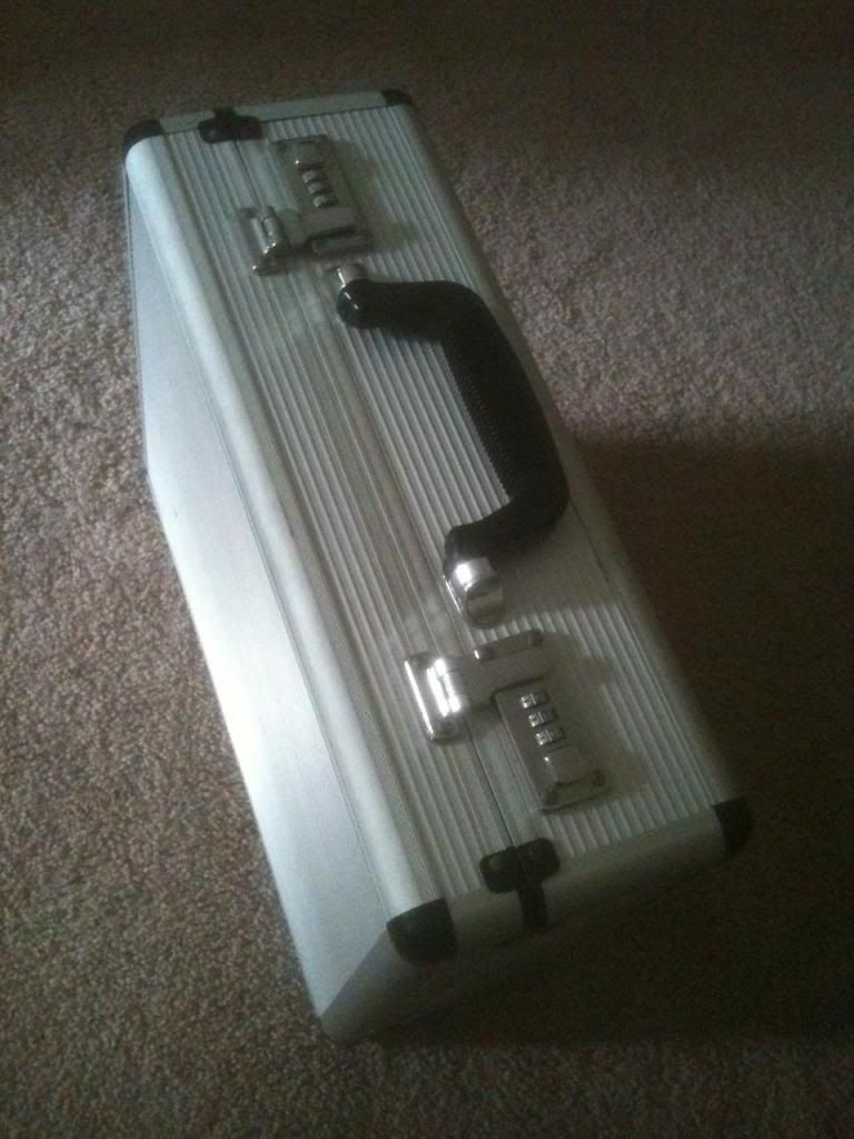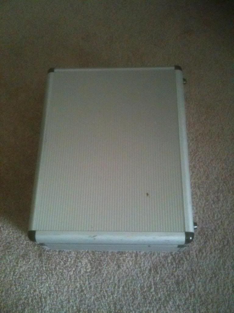 Also have this carry case for sale. Aluminum, with foam on the inside. I *think* it measures 18"x15"x6". Has clasps that can be set to combination lock. Would be great for carrying Warhammer