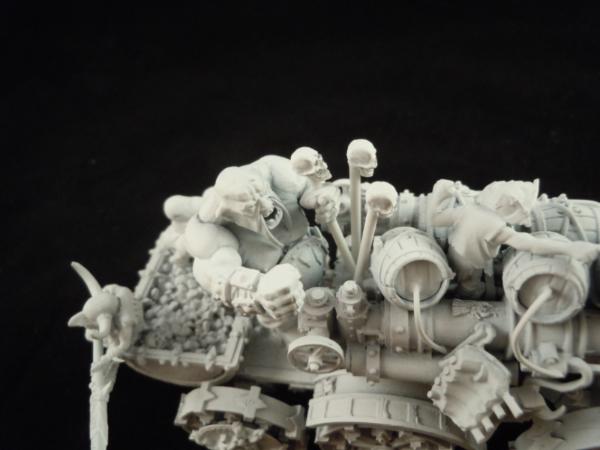 Below is my conversion of the Iron Blaster. I really didnt like the gw model, and I had a Chaos Dwarf Iron Demon laying around. I put kegs with fuzes on top to look like bombs. I also attached an ogre and fashioned some oversized controls. Let me know if you have any thoughts or critiques. I am thinking about making another of these for my army.