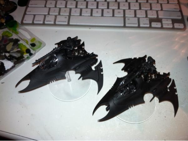 So far I have assembled and primered black...30 wyches, 15 kabalite warriors, 5 trueborn with blasters, 5 scourges, 1 haemonculus, 2 Raiders, 3 Ravagers, 9 Reavers, and 5 venoms. I have some beasts cleaned and primered gray, and am currently cleaning and assembling 5 metal incubi, a metal beast master, a failcast archon, 10 failcast wracks, 5 hellions, and 10 more kabalite warriors (some of which I may make into trueborn) I'm planning on going with the edge highlight scheme that the