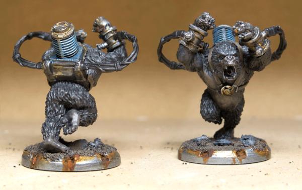 . For example top left is a mixture of the Vallejo resin and the snow flock (R+F) and bottom left is a layer of resin painted onto the base, with some flock over the top (R->F).