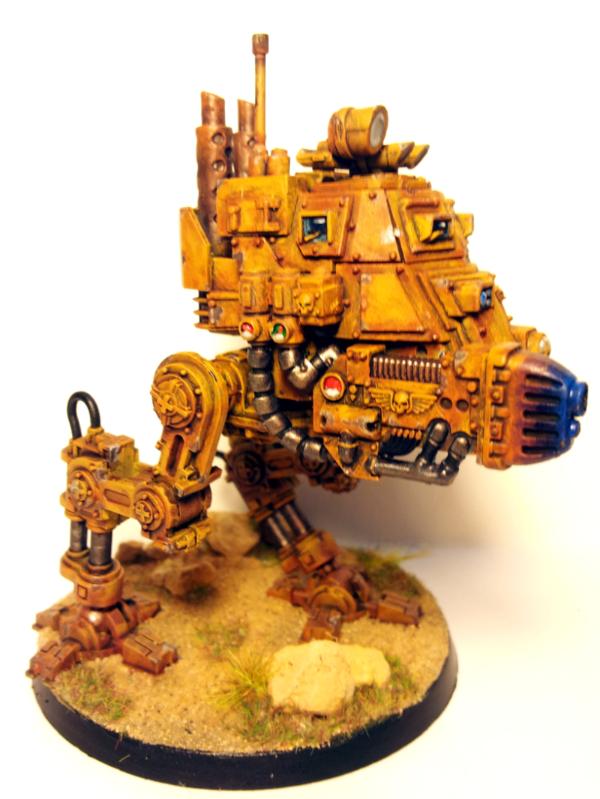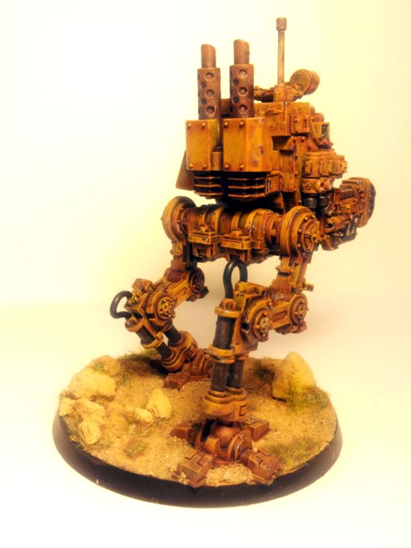 It looks a lot different with actual terrain behind it. The base, dust, scratches and heating effects look good.