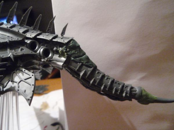 I thought about pointing the tail down, but it interrupts the flow of the model so i decided not to. As for the transition, ill be giving the model a greenstuffing before i call it a day, and fill in some of the gaps the kitbash left me with. Thanks for the comment