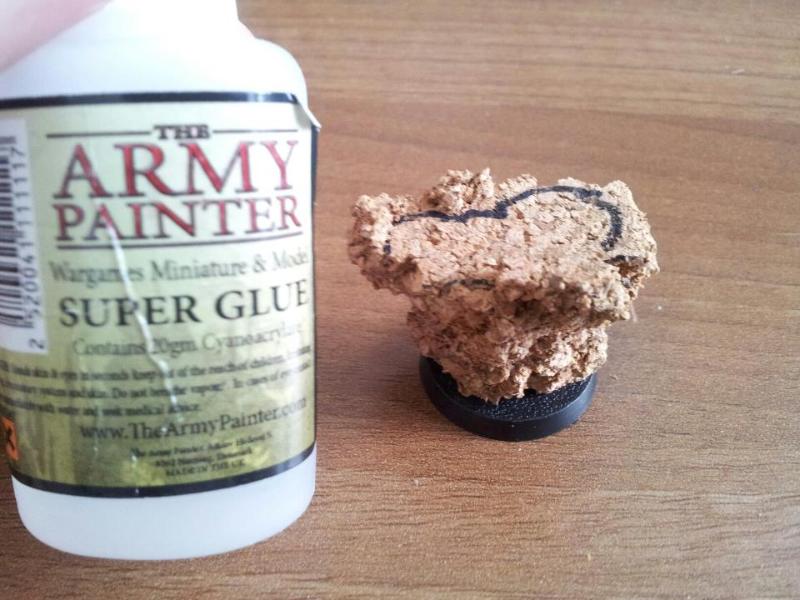 Build up your base using superglue. You could use PVA glue or white glue for this but it will take longer to dry. you can see on the top i drew where my miniature is gonna stand so i wont change that area.