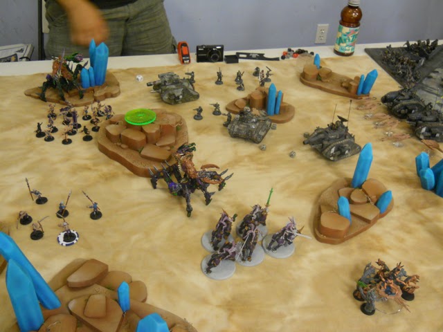 I made 1 crucial mistake in this game as well....I forgot that we were playing Big Guns Never Tire (actually, we both forgot)!!! I never moved my biovores, who were scoring, towards the left objective even though I could have very easily done so.
